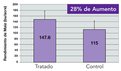 Las condiciones de crecimiento temprano en el sitio fueron ideales con la precipitación adecuada y temperaturas moderadas. Sin embargo, el clima seco apartir del 20 de mayo hasta el final de la temporada resultó en estrés a lo largo delperíodo de V10 a madurez. El análisis de los datos encontró que el tratamientocon Quantum Growth aumentó significativamente el rendimiento encomparación con el tratamiento normal.