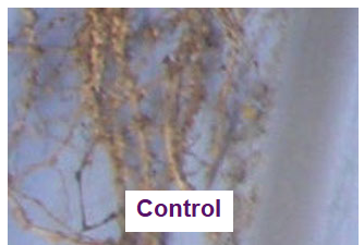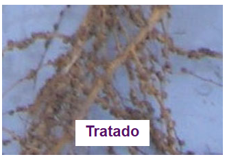 Este ejemplo demuestra visiblemente la diferencia en la densidad de nódulos entre las muestras con tratamiento y sin trata-miento.