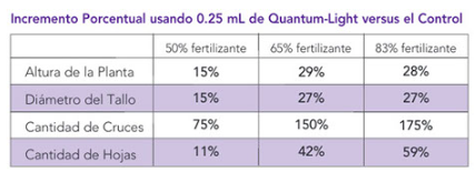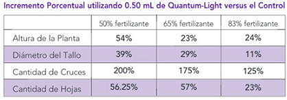 En la comparación del crecimiento de las plantas de la imagen, el incremento de la cantidad de Quantum-Lighty reducción del uso de fertilizante tradicional demuestra que las plantas son mas grandes.