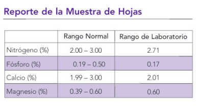 Los árboles de cereza que crecieron en suelos deficientes de N, P, Ca y Mg tenían hojas detamaño normal para esos nutrientes. Los únicos insumos que agregó el productor fueron aguay Quantum Growth.