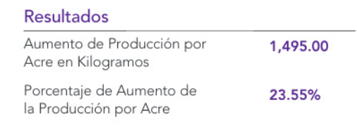 •24% de aumento en la producción • 25% de reducción en fertilizante • Retorno de inversión multiplicado por 30
