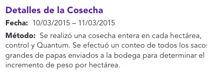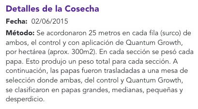 En 2010, cuatro productores de papa participaron en un estudio para probar los beneficiosde Quantum Growth en su cosecha, en el estado de Sao Paulo, Brasil. El experimento fuesupervisado por el profesor André Palermo Tonietti de la Universidad de Pinhal