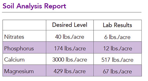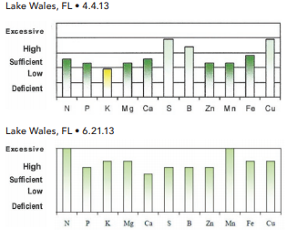 P, Ca and Mg deficient soil had leaves in the normal range for those nutrients. The only inputs for this farmer were water and Quantum Growth.