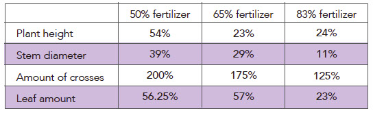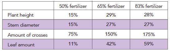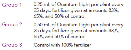 Below, in the plant growth comparison, increased amounts of Quantum-Light and decreased amounts of traditional fertilizer yielded noticeably larger plants.